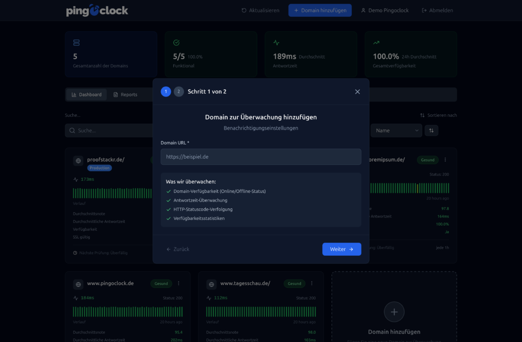 Beim Hinzufügen einer Domain als Gast wurde bisher ein Werbeblock mit Feature-Übersicht neben dem Modal angezeigt. Dieser war für neue Nutzer hilfreich, für bestehende Nutzer jedoch störend. Der Block wurde daher entfernt, um den Fokus auf den eigentlichen Vorgang zu legen.